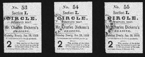 Entradas para lecturas públicas de Dickens en Nueva York, 1868. Charles Dickens Museu